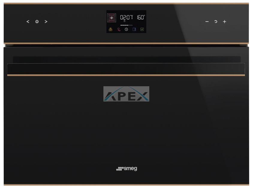 SMEG KOMPAKT KOMBINÁLT MIKROHULLÁMÚ SÜTŐ, Dolce Stil Novo design, Galileo, 45 cm, ES LCD, fekete üveg, réz dísz