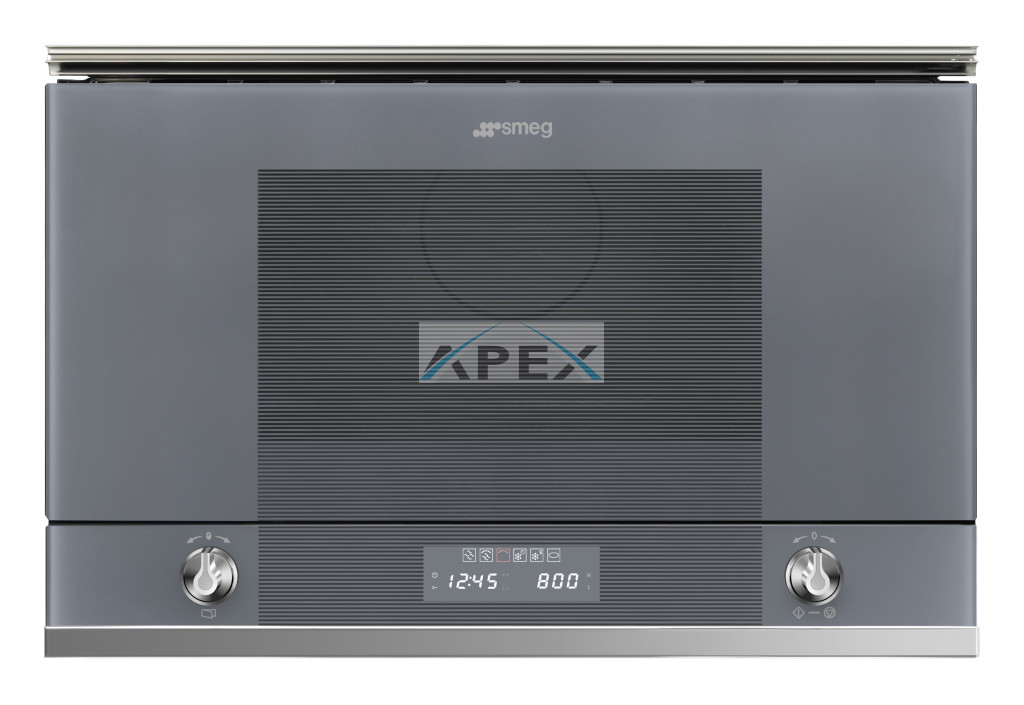 SMEG BEÉPÍTHETŐ MIKROHULLÁMÚ SÜTŐ, Linea design, 22 liter, 6 funkció, LED kijelző,forgótányér nélküli, ezüst szürke üveg