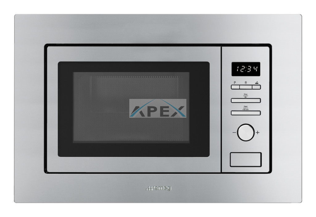 SMEG MIKROHULLÁMÚ SÜTŐ, Universal design, beépíthető, 17 liter, 6 funkció, LED kijelző, rozsdamentes acél