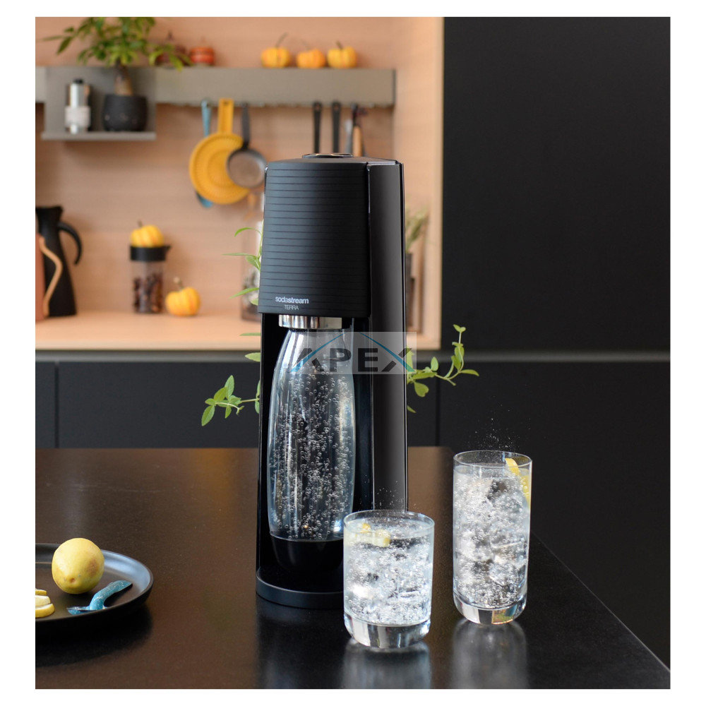 A SodaStreamnél mindig azon dolgozunk, hogy a lehető legnagyobb felhasználói kényelmet biztosítsuk. Ezért jött létre az új, továbbfejlesztett SodaStream TERRA szénsavasító család. A TERRA a kényelemről és a könnyed stílusról szól. Letisztult fekete dizájnját, a matt és fényes felületi textúrákat ötvözve ismerheted meg. Ergonomikus szénsavasító gombjával, az egyszerű és tetszetős kialakításával, a TERRA olyan színes, csillogó élményt teremt, amely szinte minden stílushoz könnyedén passzol.