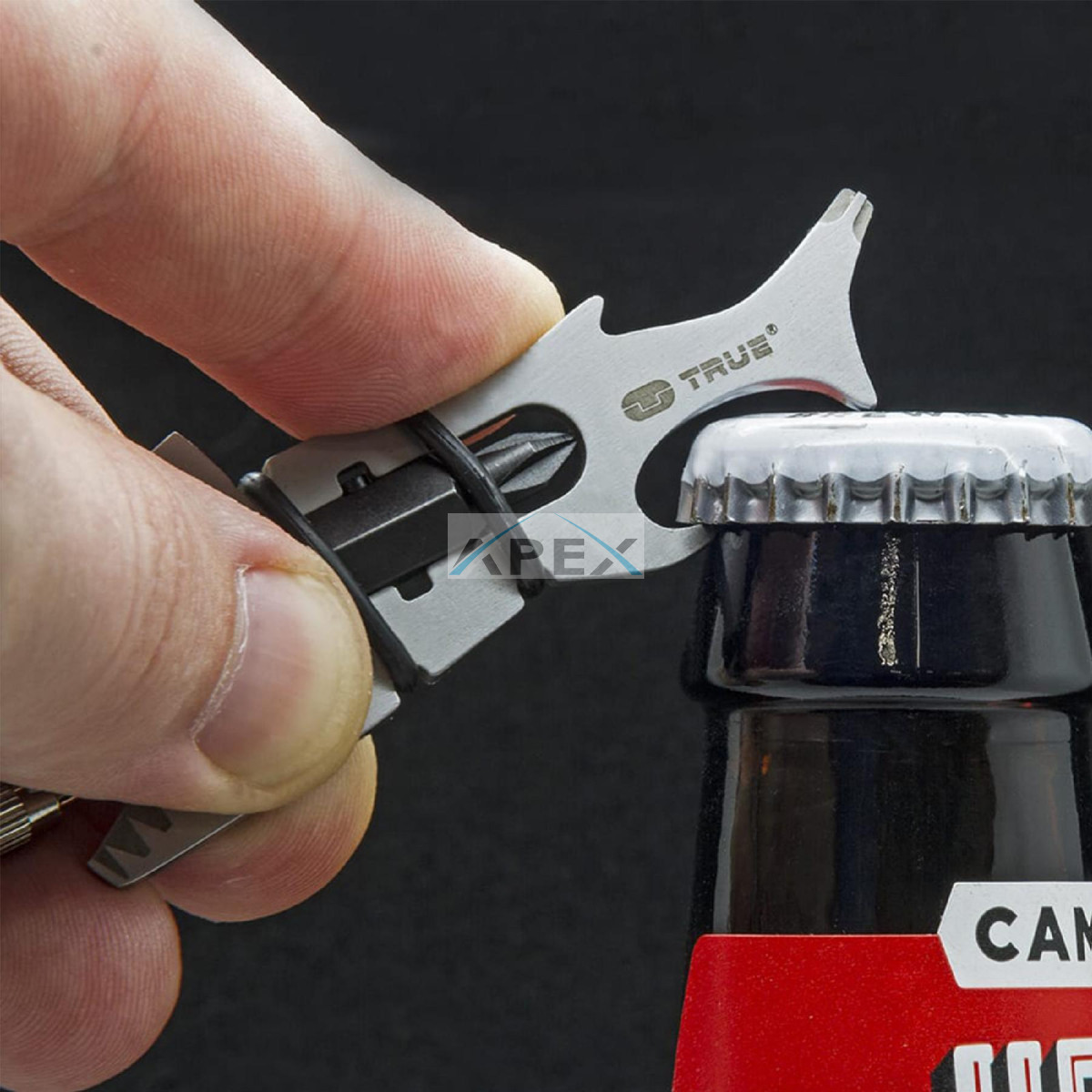 A True Utility Sharkey TU214K egy rendkívül kompakt, multifunkcionális szerszám, amely mindössze 2,5 x 0,8 x 6,8 cm méretű. Ennek ellenére 12 különböző funkciót nyújt, beleértve a karabinert, különböző méretű laposfejű és csillagcsavarhúzókat, reszelőt, körömtisztítót, damilvágót, 1/4\ csavarkulcsot és sörnyitót. Egyesíti a praktikumot és a hordozhatóságot, így ideális társ lehet kirándulásokon, otthoni munkáknál vagy akár mindennapi használatra.
