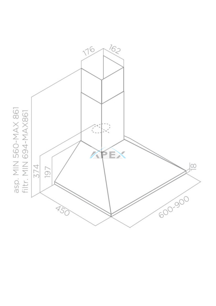A készülék továbbfejlesztett energiatakarékos és költséghatékony LED világítással rendelkezik, melynek élettartama tízszerese a hagyományos izzókénak, ugyanakkor 90 %-kal kevesebb energiát fogyaszt. A páraelszívó falra szerelhető és 3 sebesség fokozattal rendelkezik. Inox színben, 60 és 90 cm széles méretben elérhető, így bármely főzőlap fölé tökéletes megoldást nyújt. A benne található nagyteljesítményű motor kiemelkedő nyomásértéke miatt 4-6 méter hosszú kivezető csőszakasz esetében is megfelelő légszállítást biztosít. A fém zsírfilterek mosogatógépben moshatók.