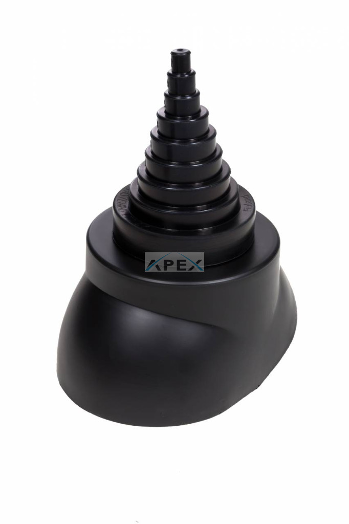 Antennák, zászlórudak, légvezetékek és egyéb csövek, merevítők tetőn át történő kivezetéséhez tervezett átvezető elem. A lépcsőzetes EPDM-gumi hüvelyből és egy műanyag gallérból álló kivezető a külön megvásárolható VILPE® átvezető elemre kerül ráhelyezésre.