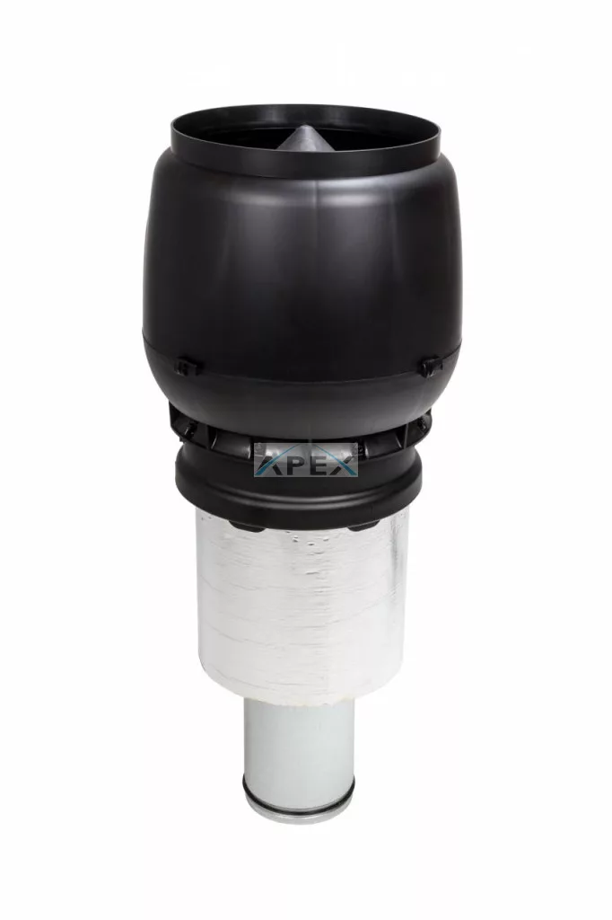 Alkalmazás: XL méretű szigetelt elvezető szellőzőcső esővédő sapkával ellátva. A belső cső horganyzott acélból készül és fésűs tömítéssel van ellátva. Bádogos által készített, átmérő:315 mm-es nyílású, kúpos lemezfém csőszegélybe helyezhető.Méretek: átmérő:160 mm-es csővezeték, átmérő:300 mm-es külső átmérő, tető feletti magasság kb. 450 mm.