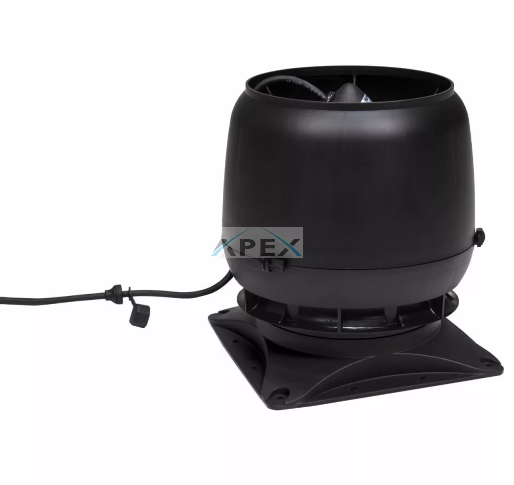 Lapos tetőn elhelyezhető tetőventilátor 230V / 50 Hz-es AC motorral, esővédő sapkával, időjárásálló kivitelben. Külső burkolata kiváló minőségű, anyagában színezett polipropilén, amely ellenáll környezeti hatásoknak széles hőmérsékleti tartományban (-30 °C ... +80 °C között).
