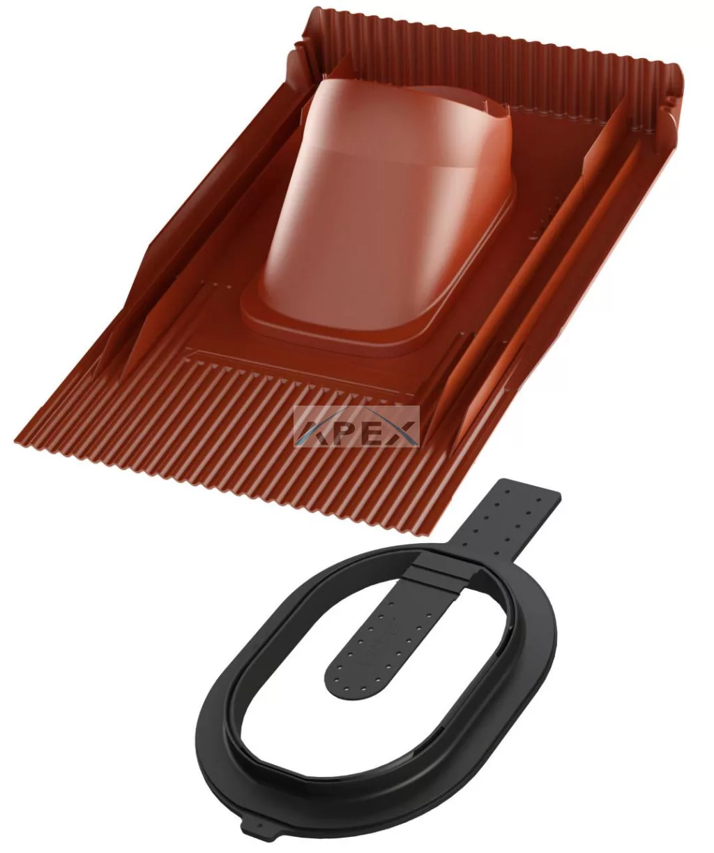 A legtöbb cseréptető (agyag-, kerámia-, beton-, egy- vagy dupla hullámos, ill. lapos cserép) típus esetén alkalmazható univerzális tetőátvezető elem, amelynél a cserép szélessége maximum 400 mm, hossza maximum 580 mm.