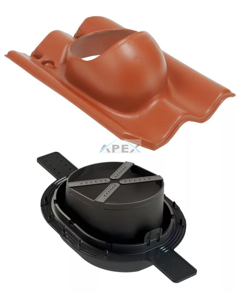 A képen látható formájú dupla hullámos (kerámia-, beton-, agyagcserép) típusok esetén alkalmazható tetőátvezető elem, amelynél a cserép szélessége maximum 330 mm, hossza maximum 440 mm.