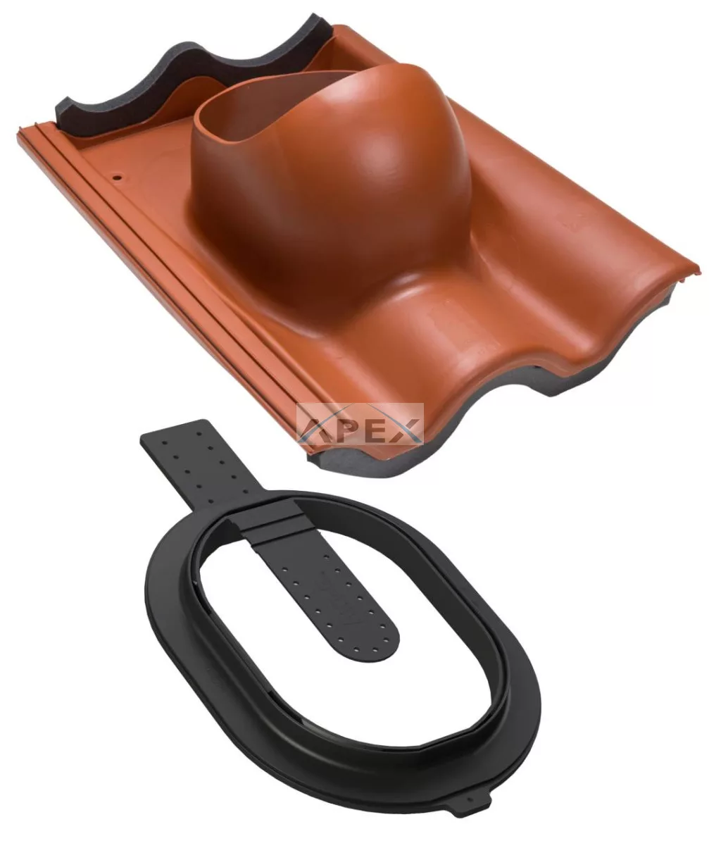 A képen látható formájú (dupla hullámos) cseréptípusok esetén alkalmazható tetőátvezető elem, amelynél a cserép szélessége 330 mm, hossza 440 mm, a hullám magasság 27-40 mm közé esik. A legszélesebb körben használt betoncserép elemekkel, ill. egyes kerámiacserép elemekkel kompatibilis (pl. Bramac Római, Adria, Alpesi, Leier Toscana, Terran Danubia, Synus, (Mediterrán) Coppo, Azzurro Primo, Unico, Nomád).