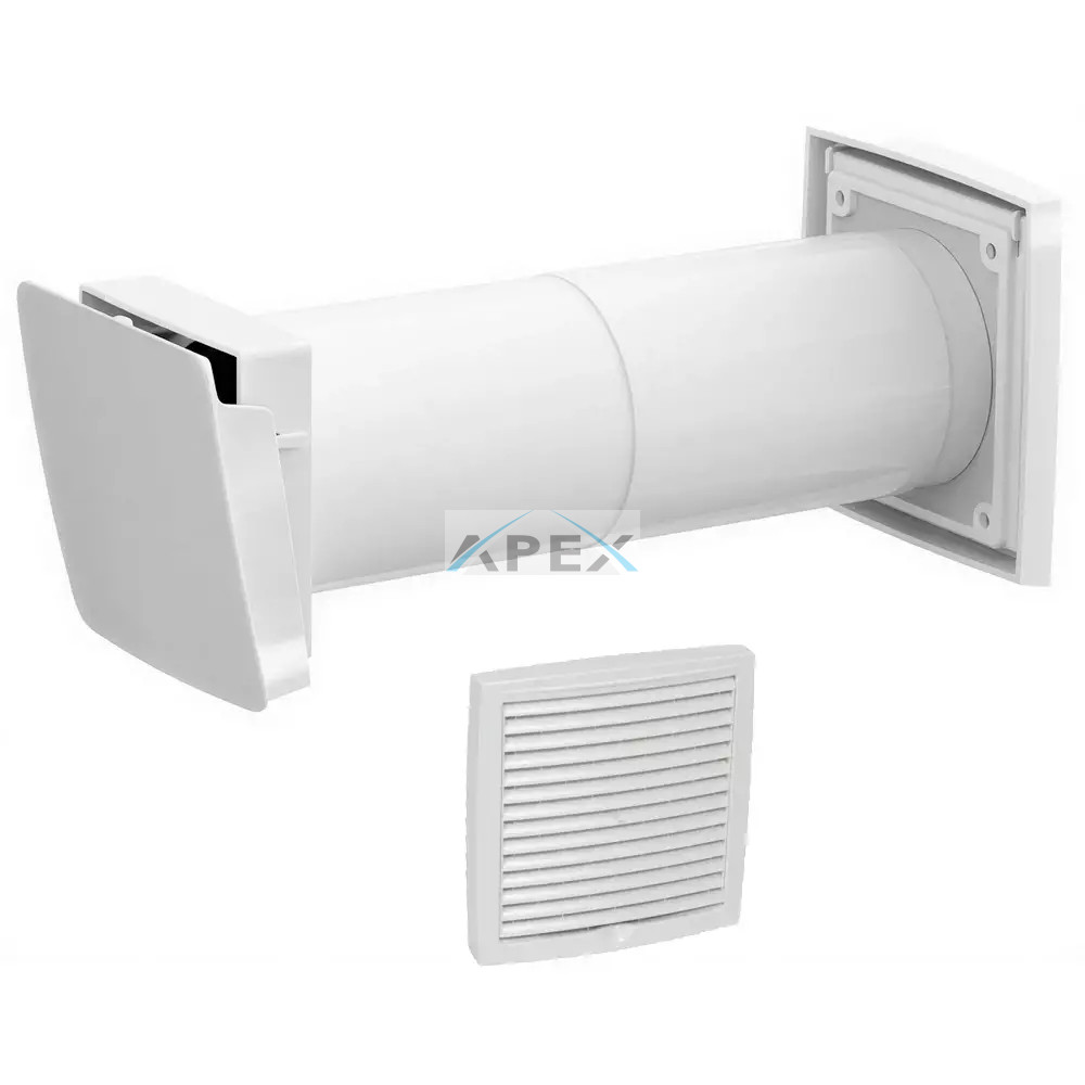 Vilpe WIVE-100 légbevezető termosztáttal, fehér színű kültéri védőráccsal