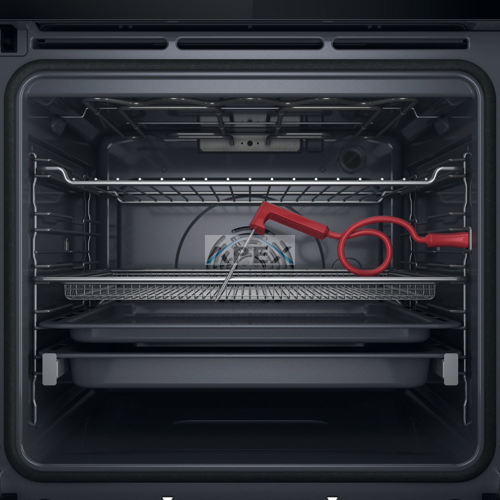 Az ételhőmérséklet-érzékelő szonda, önállóan tartó kábelének köszönhetően, folyamatosan figyeli és szabályozza az ételek belső hőmérsékletét, legyen szó húsról vagy folyékony alapú fogásokról.