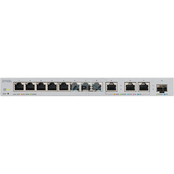 ZYXEL Switch 11x1000Mbps (3x10G) + 1xGigabit SFP+, Fémházas Webmenedzselhető, XGS1250-12-ZZ0102F