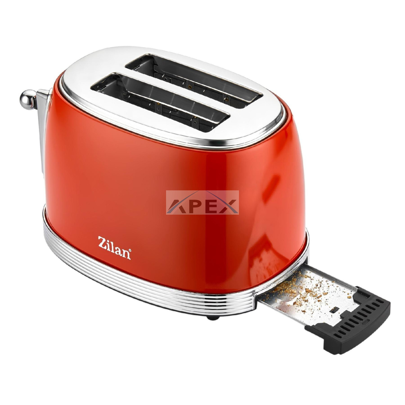 Zilan ZLN7040 retró kenyérpirító, 850 W, 6 fokozat, 2 szeletes, STOP funkció, piros