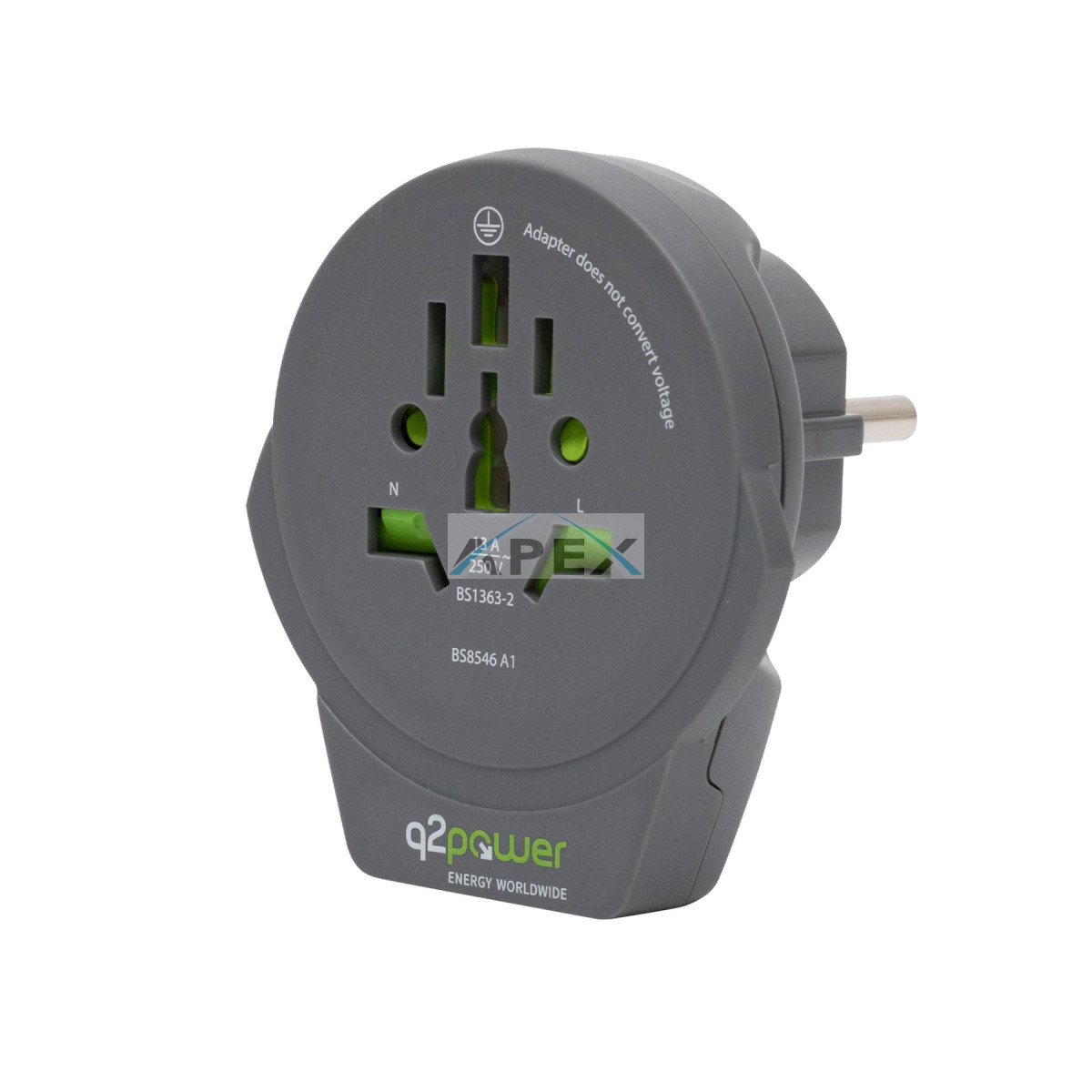 Európába utazik és nem akar bajlódni a töltők és adapterek sokaságával? A q2power 1.100110-TH utazóadapter a megoldás.