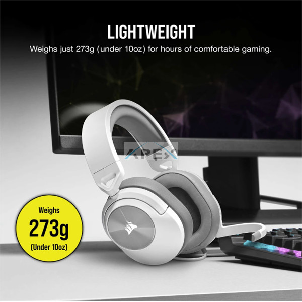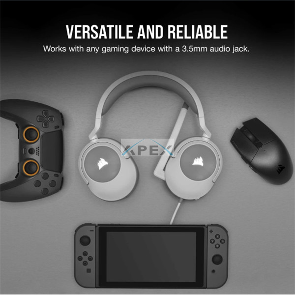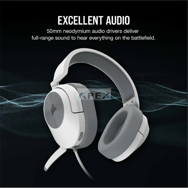 CORSAIR Vezetékes Headset, HS55 Gaming, Ultrakönnyű, Jack dugós, fehér