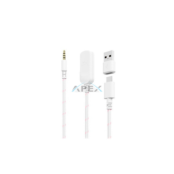 A doboz tartalma Gamer headset, leválasztható mikrofon, USB-hardverkulcs, USB-C–USB-A adapter, gyorskalauz