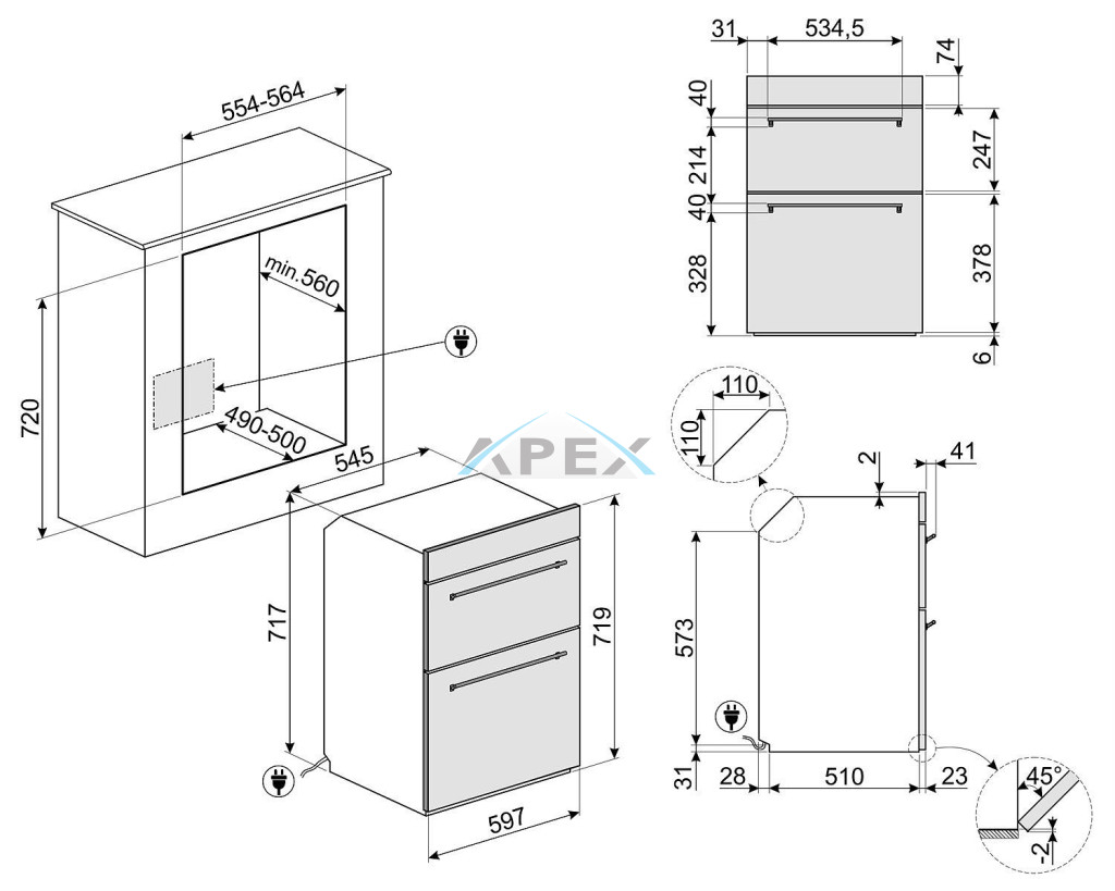 SMEG DUPLA HŐLÉGKEVERÉSES SÜTŐ, Classica design, 60x88 cm, ES LCD, pult alá építhető, inox