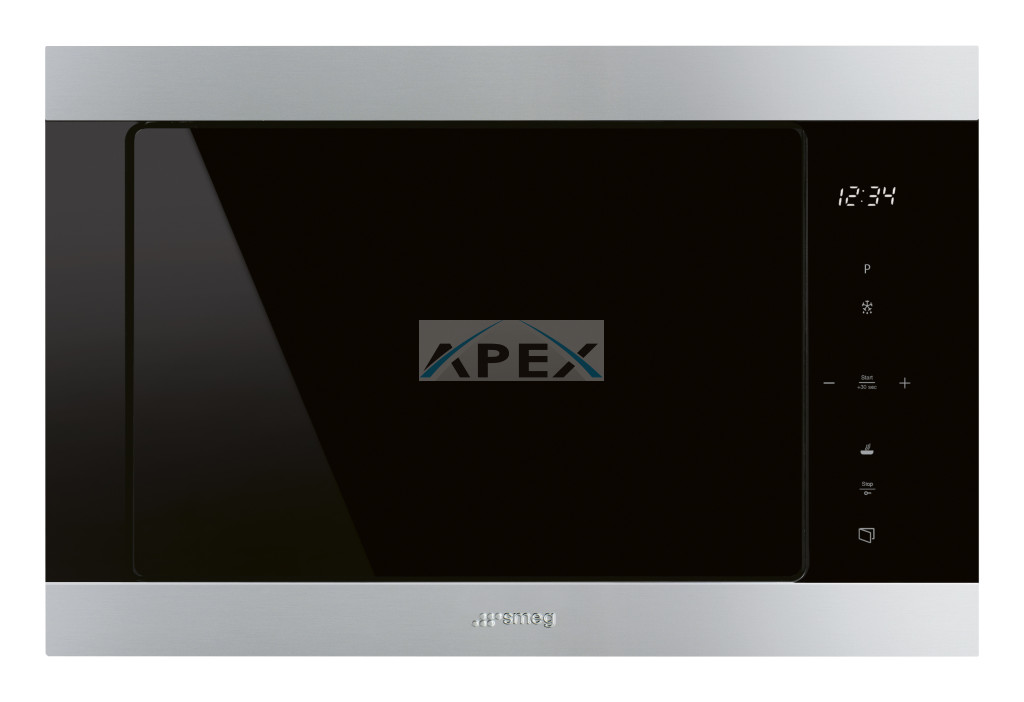 SMEG MIKROHULLÁMÚ SÜTŐ, Classic design, beépíthető, 25 liter, 6 funkció, LED kijelző, rozsdamentes acél/ fekete üveg