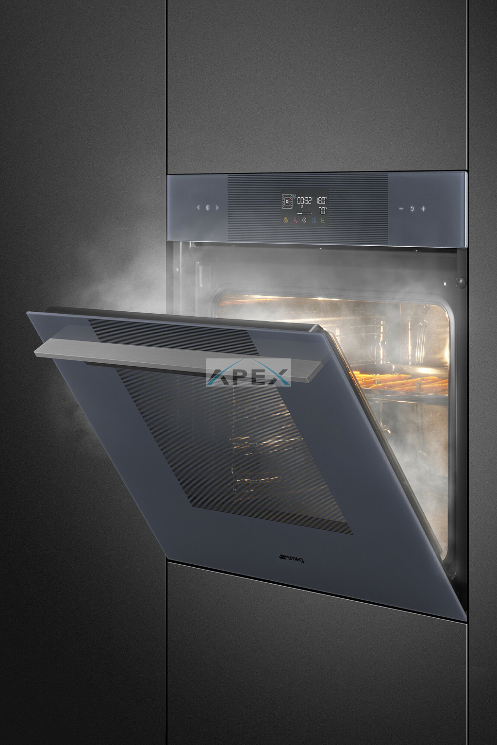 SMEG KOMBINÁLT GŐZPÁROLÓ-SÜTŐ, Linea design, 60 cm széles, Steam100, 12+1 funkció, EvoScreen LCD kijelző, neptune szürke üveg