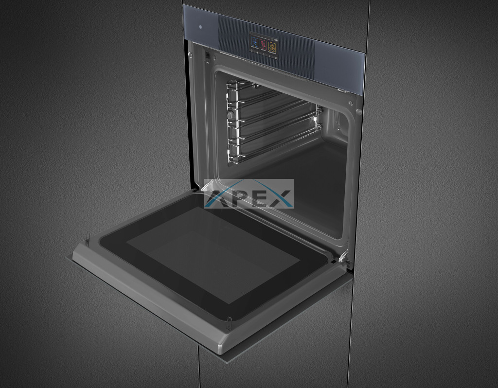 teleszkópos sütősín (teljesen kihúzható),többpontos maghőmérő,rács (1 db),1 db rozsdamentes acél tepsi (20 mm),1 db rozsdamentes acél mély tepsi (40 mm),1 db zománcozott mély tepsi (50 mm)