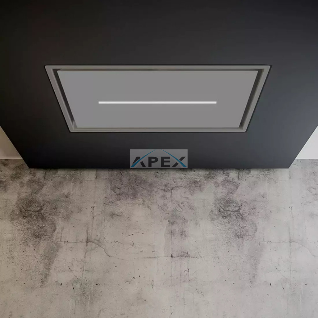 A SIRIUS SLT-971 EM páraelszívó mennyezetbe építhető kivitele tökéletes választás azokba a modern konyhákba, ahol a tágas tér, a funkcionalitás és a letisztult forma harmóniája elsődleges szempont. A 90 cm széles készülékház elegánsan simul bele a mennyezeti síkba, miközben látványosan kiemeli a konyha magas színvonalú belsőépítészeti megoldásait. A fehérre festett rozsdamentes acél testet prémium fehér üveg panel koronázza meg, amely nemcsak látványos, hanem könnyen tisztán tartható is.