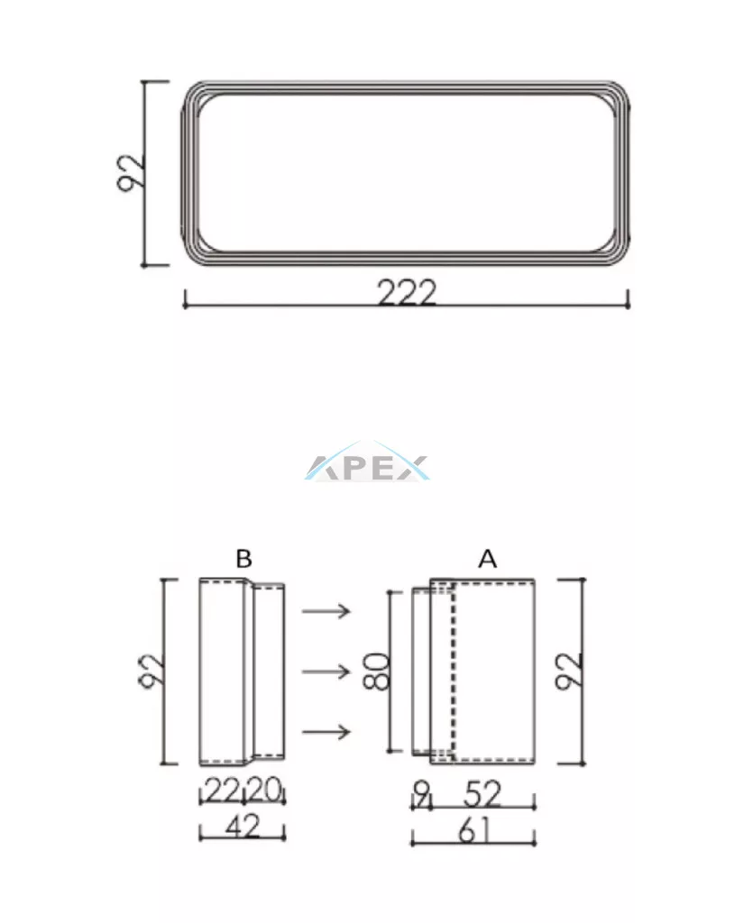 Lapos csatorna átalakító Quadro sorozathoz. Az átalakító két részből áll (átalakító + lapos csatorna darab). Az átalakító a Quadro sorozathoz használható amennyiben a további elvezetést a Falmec KACL.352 lapos csatornával szeretnénk megoldani. Ebben az esetben szükség van még egy Falmec KACL.356 csatlakozó/toldó elemre is.