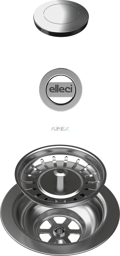 ELLECI STANDARD OPEN UP nyomógombos automata dugókiemelő kerek túlfolyóval egymedencés mosogatókhoz inox színben.