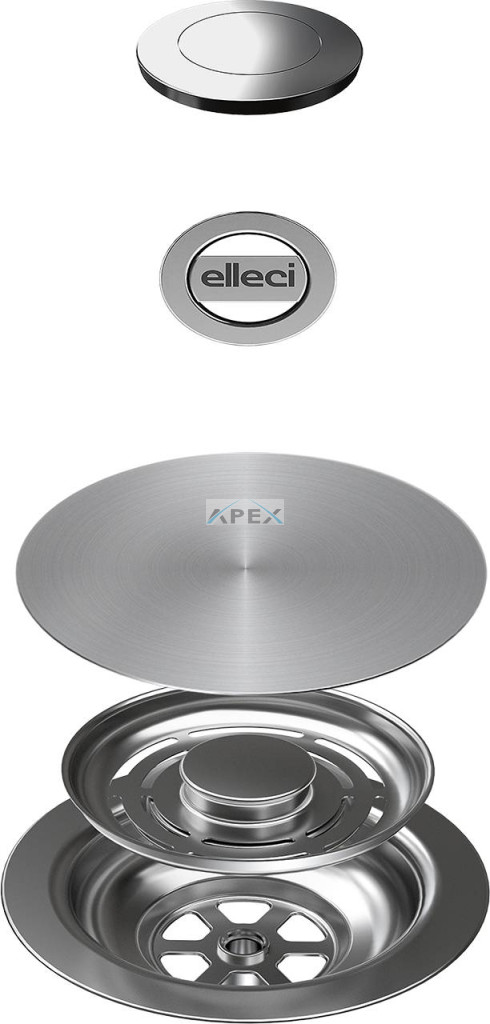 ELLECI GHOST OPEN UP (nyomógombos) automata dugókiemelő egymedencés mosogatókhoz inox színben. Kerek túlfolyóval.